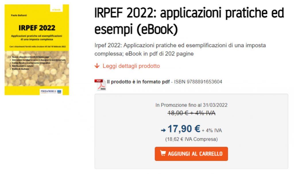Ti consigliamo l’e-book IRPEF 2022: applicazioni pratiche ed esempi