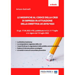Le modifiche al Codice della crisi di impresa in attuazione della Direttiva UE 2019/1023; eBook in pdf di 174 pagine D.Lgs. 17.06.2022 n. 83, pubblicato in G.U. il 1° luglio e in vigore dal 15 luglio 2022 |