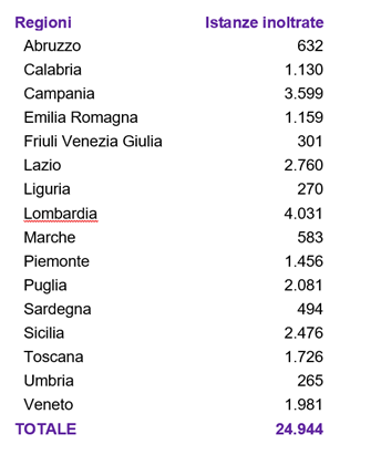In data 9 febbraio è stato reso noto il numero di domande poste per ogni regione, che pubblichiamo di seguito: