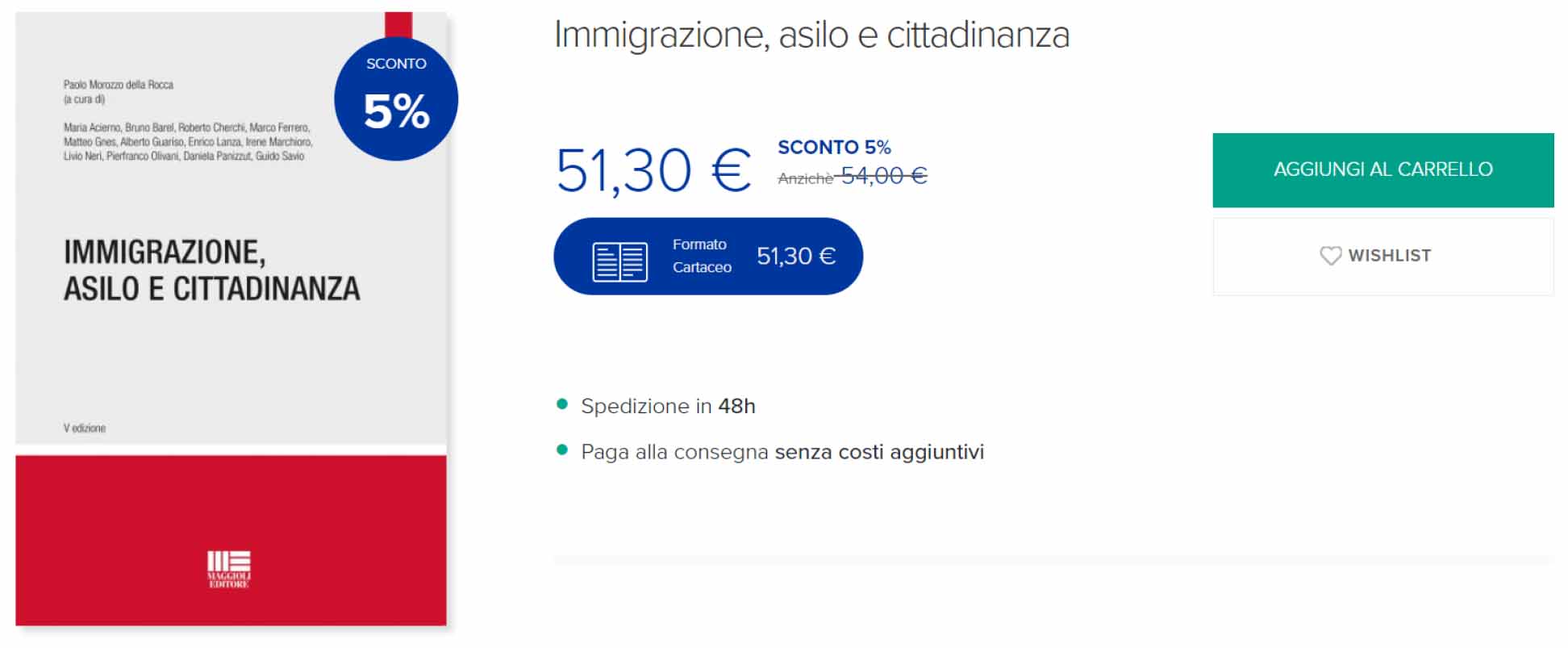 Per approfondire il tema del diritto dell’immigrazione nel suo vissuto giurisdizionale e nelle prassi amministrative, consigliamo il volume “Immigrazione, asilo e cittadinanza” edito da Maggioli Editore. Il volume mette in rilievo, con buona completezza, gli orientamenti giurisprudenziali, segnalando però anche la dottrina “utile”, perché propositiva di soluzioni interpretative utilizzabili dall’operatore (giudici, avvocati, amministrazioni, servizi, ecc.).