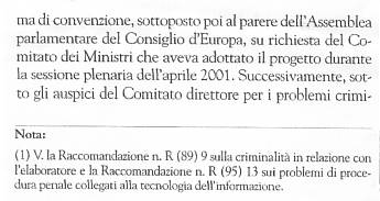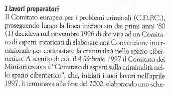 *** La Convenzione del Consiglio d'Europa sulla cibercriminalità, aperta alla firma a Budapest il 23 novembre 2001, rappresenta il maggior sforzo sinora effettuato a livello internazionale per tentare di combattere in modo efficiente questo particolare tièpo di criminalità. i cui sviluppi, gestiti sempre più spesso dalla criminalità organizzata e terroristica, sembrano minacciare seriamente, oltre che delicati settori dell'economia e della finanza mondiale, lo stesso assetto politico dei maggiori Paese industrializzati.